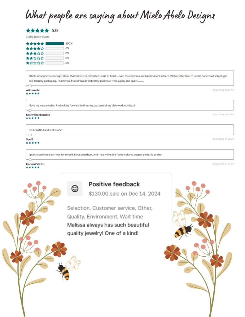Hi, I’m Melissa, the designer and maker behind this one-woman show I call Mielo Abelo Designs. This site, like my jewelry, is a work in progress. I plan to post my finished pieces and also share some of my process getting there.